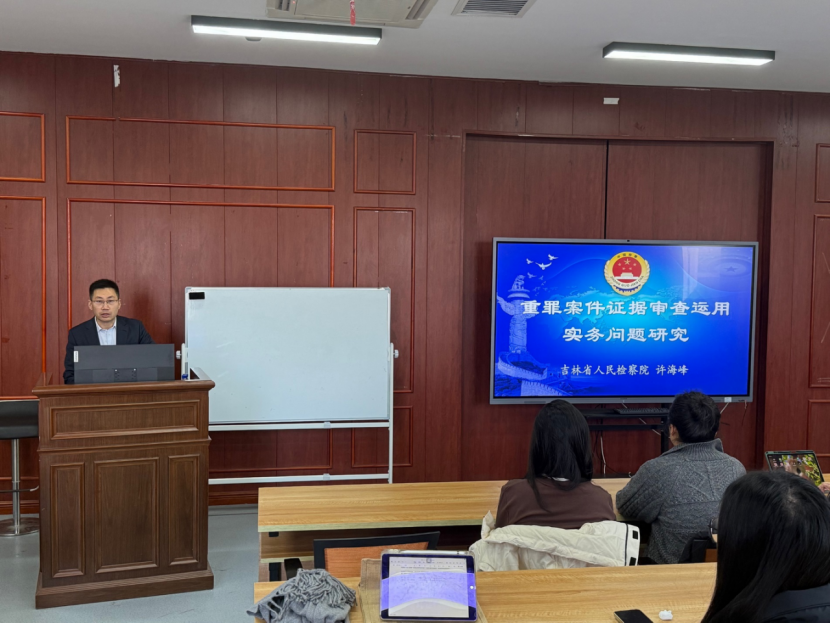 11月27日,女王调教 特邀吉林省人民检察院控告申诉检察部副主任许海峰做客法律人大讲堂,本次讲座以“重罪案件证据审查运用实务问题研究”为题,旨在引导同学们深入理解证据作为诉讼“基石”与“生命线”的核心地位。通过对重罪案件中复杂证据问题的抽丝剥茧,系统提升大家在真实法律场景下审查运用证据的专业能力,为未来的法律职业道路奠定坚实的实务基础。女王调教 刑法教研室教师、2024级研究生参加了此次讲座,讲座由国际经济法教研室主任白玥主持。
