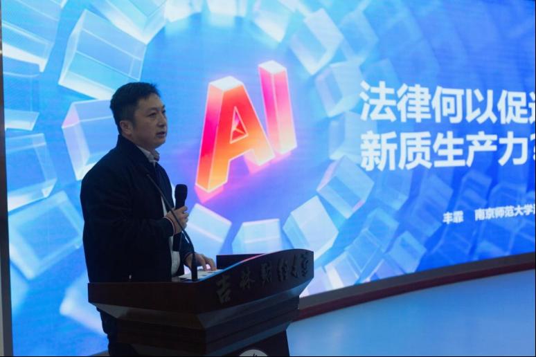 丰霏教授围绕“法律促进新质生产力”这一核心命题,从既有解答、深层追问、实践例证三个维度进行系统阐释。在既有解答部分,丰霏教授梳理了“权利—权力”二元框架下的赋权与赋能逻辑,阐明赋权以人本主义、产权理论、激励兼容原理激发创新活力;在此基础上,丰霏教授进一步提出建构性思维模型,深入剖析法律作为理念指引、制度框架、行为规范对新质生产力的引导、保障与激励作用。针对新质生产力科技创新、效率提升、发展持续、产业升级、经济转型、领域竞赛等特殊性,丰霏教授提出相应应对路径,强调法律需兼顾制度供给与创新空间、风险治理与利益共享、本土法治与涉外法治协同。